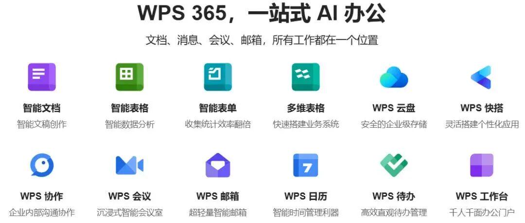 WPS 365,是做政企业务的主力,包含WPS Office、WPS AI企业版及WPS协作,对标微软Microsoft 365。