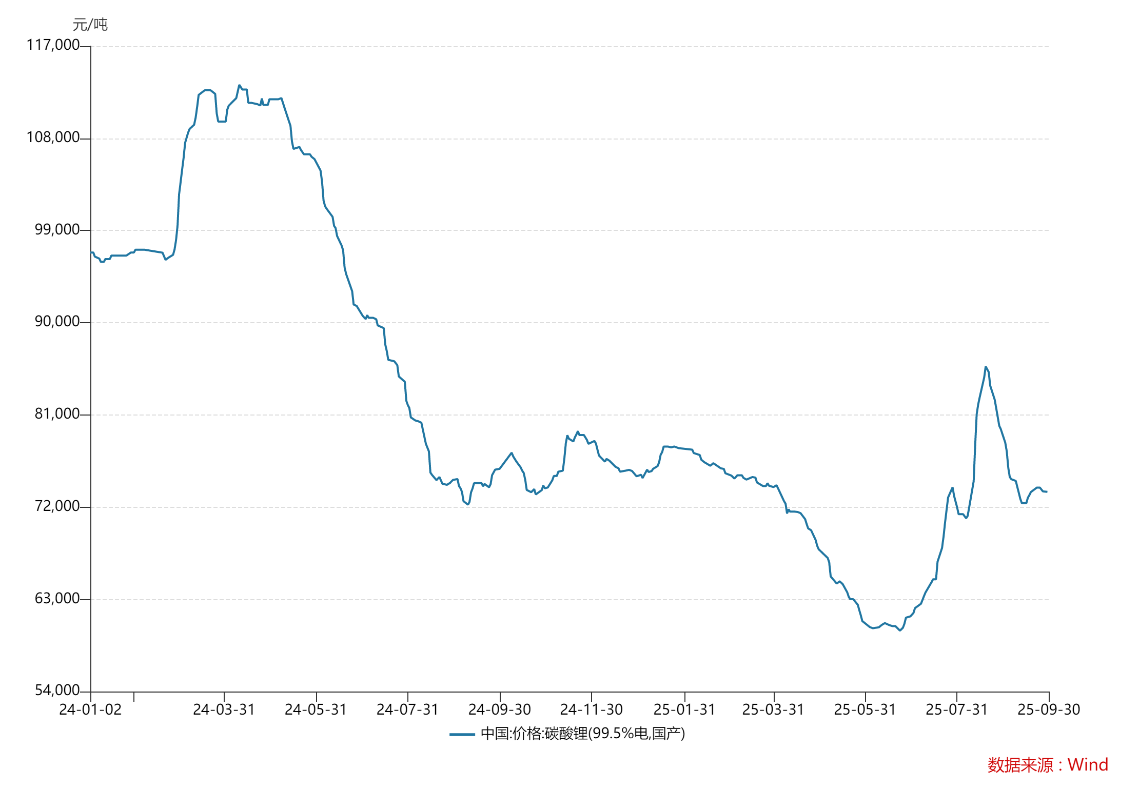 但这份亮眼的单季业绩,却难掩盛新锂能经营的窘迫:2025 年前三季度营收同比下滑 12%,归属净利润仍亏损 7.52 亿元;更为矛盾的是,公司将亏损主因归咎于 “锂价暴跌”,可截至 9 月底,国产碳酸锂(99.5%)价格较年初仅下滑 2.26%,第三季度甚至还大涨 20%。