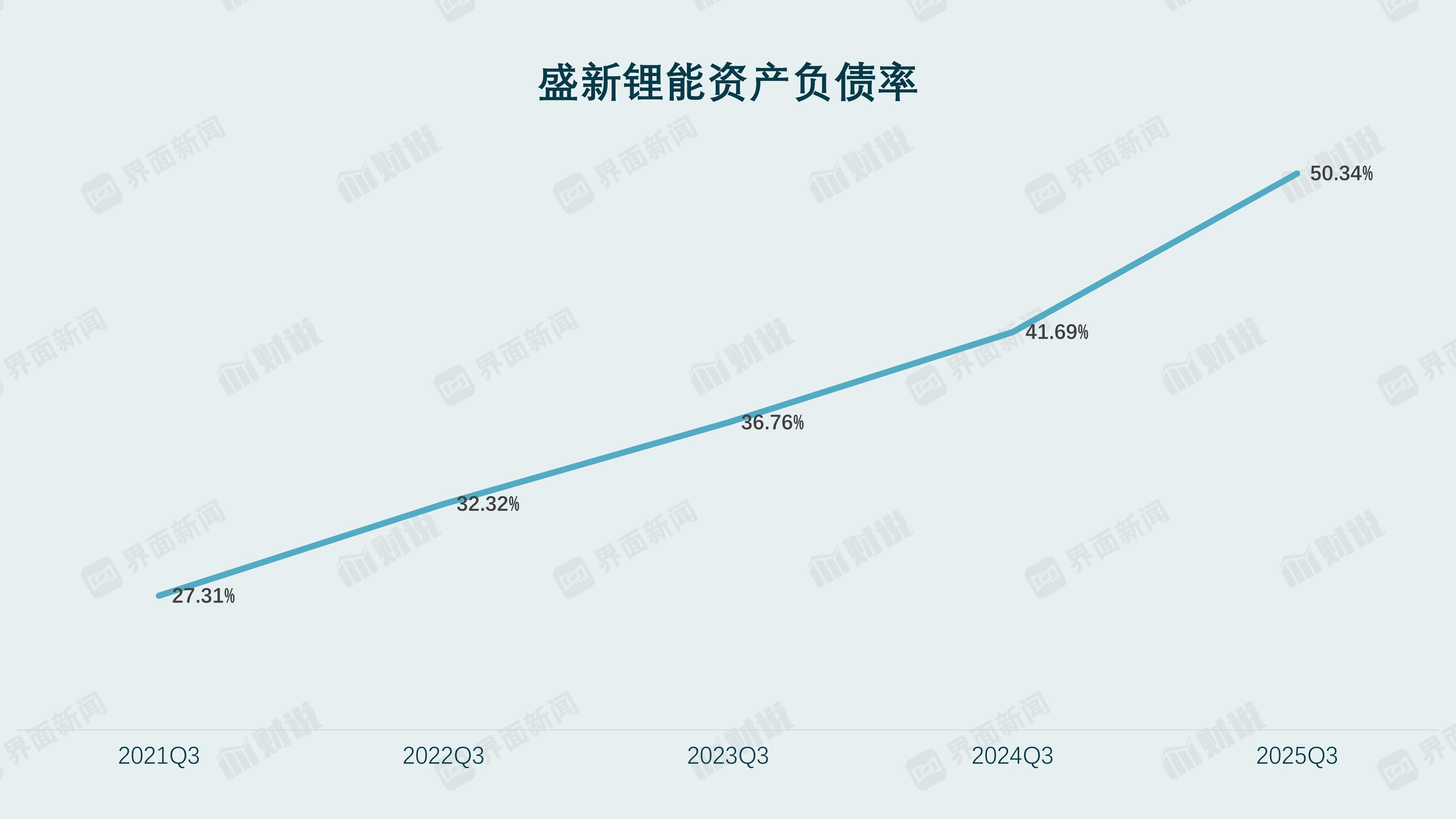 债务结构进一步放大了偿债压力。界面新闻拆解公司有息负债发现,截至 9 月底,盛新锂能短期借款达 45.83 亿元,一年内到期的非流动负债 15.13 亿元,两者合计 60.96 亿元;而长期借款仅 22 亿元,债务结构呈现 “短债长用” 的典型风险特征。