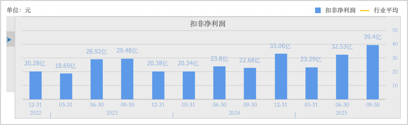 利润端则更加强势,前三季度归母净利润120.76亿元,同比大增84.84%;第三季度35.15亿元,同比增厚53.27%,扣非后达到39.40亿,增速依然超过73%。