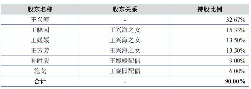 截至招股说明书签署之日,王兴海家族直接持有公司股份54,000,000股,占公司总股本的90.00%;嘉兴土拔、嘉兴永思累计持有公司股份3,000,000股,占公司总股本的5.00%,王晓园担任嘉兴土拔、嘉兴永思的执行事务合伙人,可以对其实施控制。因此,王兴海家族