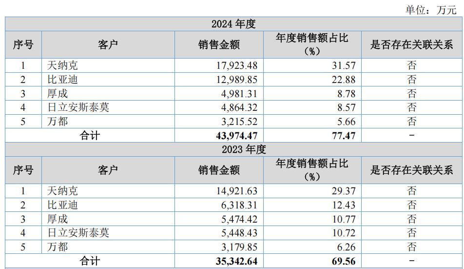 统管件、发动机系统管件、其他产品等。2022年-2024年,公司营业收入分别为4.16亿元、5.081亿元和5.677亿元,净利润分别为6038.56万元、9294.83万元和9480.6万元。2023年、2024年营业收入同比增长22.15%和11.72%,净利润同比增长53.92%和2%,报告期内业绩增速放缓。