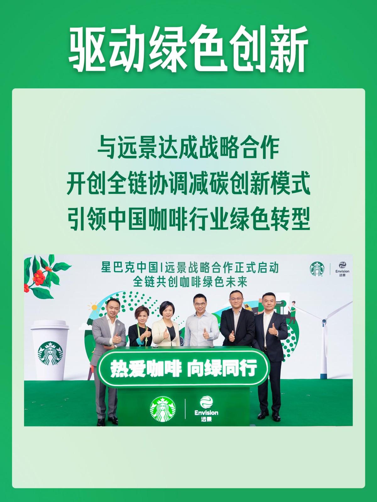 与远景科技集团拓展可持续战略合作:在既有的星巴克咖啡创新产业园与绿色门店的可持续创新合作基础上,星巴克中国与远景的合作延伸至供应链碳管理领域。双方将共同打造星巴克中国供应链碳管理平台,覆盖100%的直接供应商与关键间接供应商。该平台将协助星巴克核算数千款产品的碳足迹,并为不同业务垂直领域定制减碳路径,其成果也将为整个食品饮料行业提供借鉴。星巴克中国正以数字技术驱动效率与减碳,同时提升伙伴与顾客体验,开创全链协同减碳的可持续发展新模式。