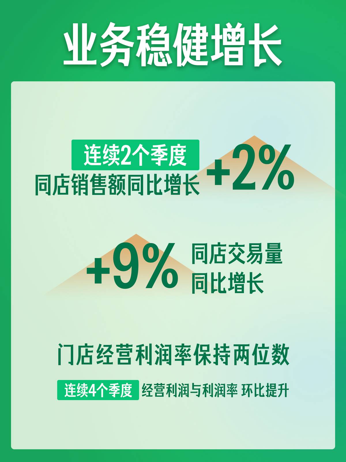 经营利润:门店经营利润率始终保持在健康的两位数水平,经营利润与利润率连续四个季度实现环比提升。