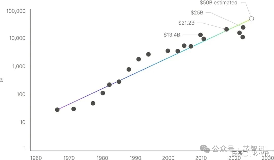 虽然许多人熟悉摩尔定律,但洛克定律是半导体制造中第二重要的定律。它观察到,建造一座尖端半导体晶圆厂的成本大约每四年翻一番,设施从2010年代初的50多亿美元增加到今天的250亿美元左右。