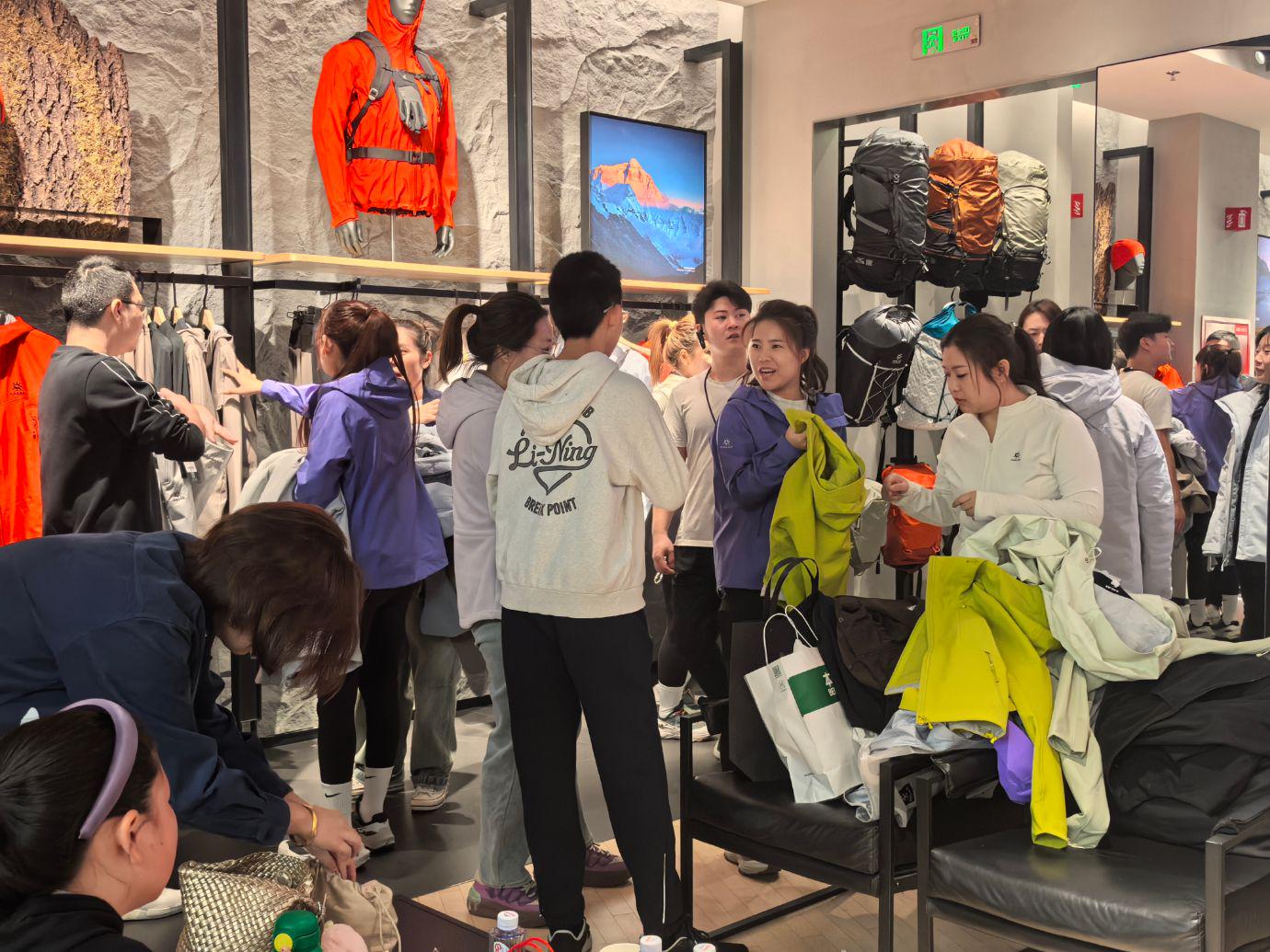 消费者在始祖鸟门店外等待进店。