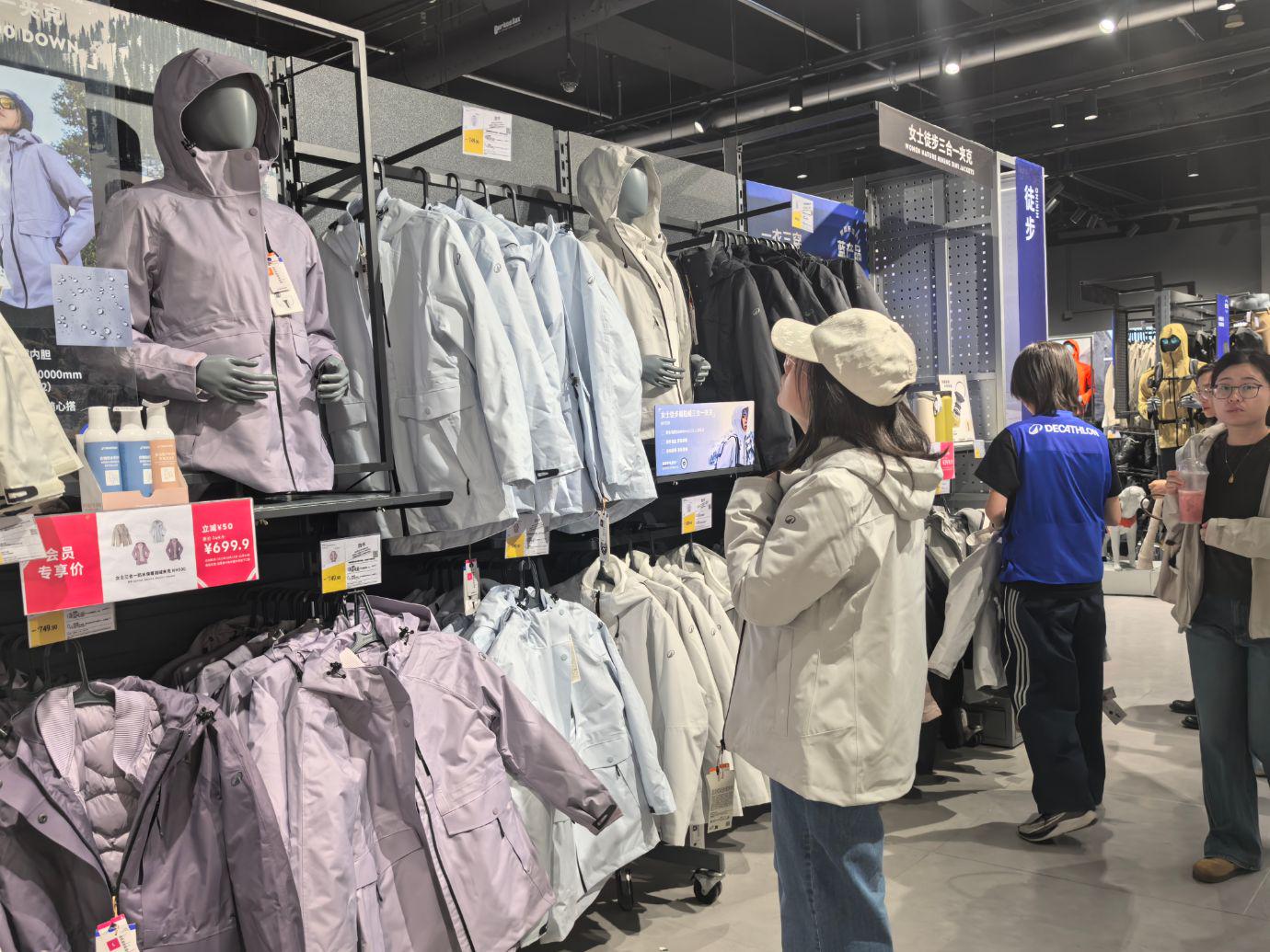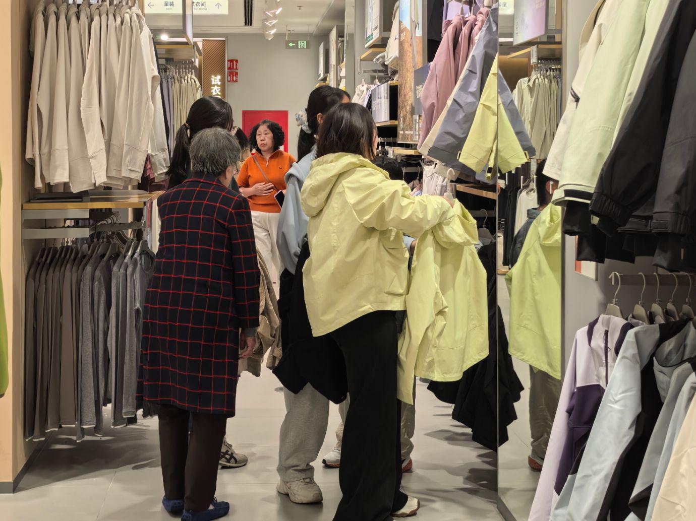 消费者正在选购冲锋衣。
