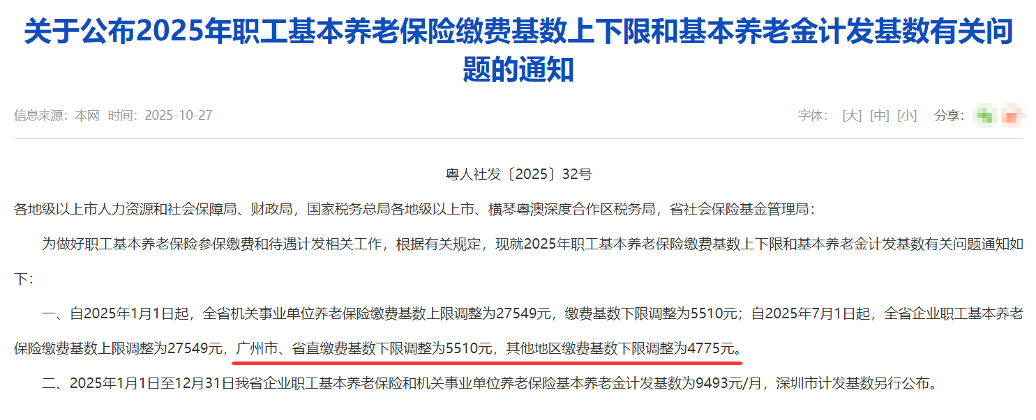 4775元就是广东社保缴费基数下限的第二档,第一档是5510元,广州和省直单位按这个来。