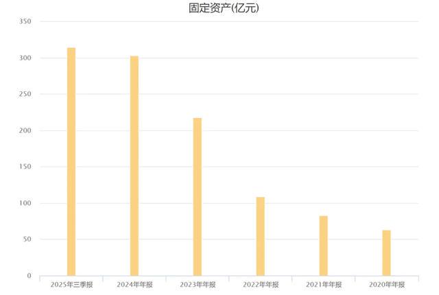 你看他的固定资产,可以说直线上升,2022年才109亿,现在已经高达314亿,3年时间都快翻3倍了。