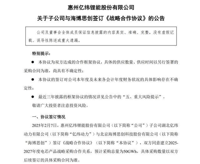 看这个公告内容,海博思创预计采购亿纬锂能50GWh的电芯产品,大概算一下就知道200亿左右。