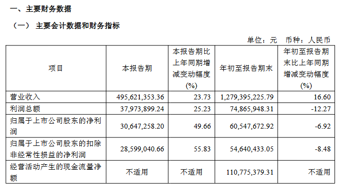 第三季度,上纬新材实现营收4.96亿元,同比增加23.73%;归属于上市公司股东的净利润3064.73万元,同比增加49.66%。前三季度,上纬新材实现营收12.79亿元,同比增长16.6%;归属于上市公司股东的净利润6054.77万元,同比下降6.92%。