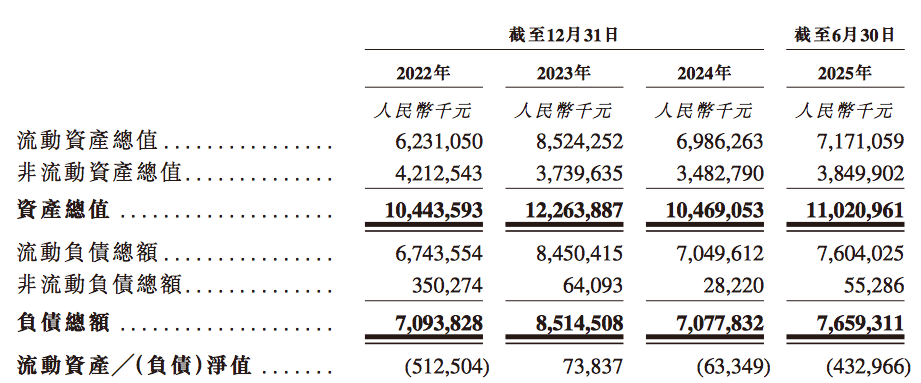 招股书显示,除2023年录得流动资产净值外,2022年全年、2024年全年以及2025年上半年,拉卡拉均录得流动负债净额,负债净额分别为5.13亿元、6335万元以及4.33亿元。