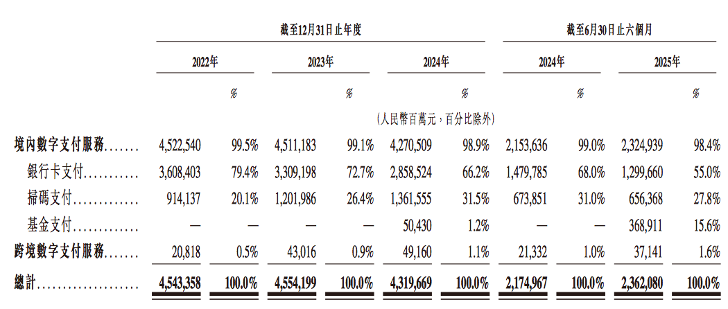 不过,从整体结构来看,截至今年上半年,来自跨境数字支付服务的总支付额占比仅为1.6%,2022-2024年的占比分别为0.5%、0.9%、1.1%,绝大多数仍然来自境内。
