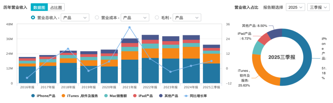 面对这一现实,苹果自2016年起便开始大力推动“服务转型”——即通过iCloud、Apple Music、App Store、Apple TV+、Apple News+等数字服务构建新的收入引擎。从苹果财报来看,这一战略取得了显著成效,服务收入成为苹果增长最快、最稳定的业务板块之一。