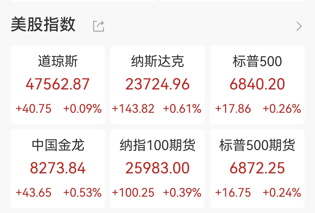 中概股多数上涨,纳斯达克中国金龙指数涨0.53%,万得中概科技龙头指数跌1.70%。个股方面,阿特斯太阳能涨近16%,奇富科技涨超13%,陆控涨逾11%;小马智行跌超5%,好未来跌逾5%,阿里巴巴跌约2%,京东集团跌近1%。