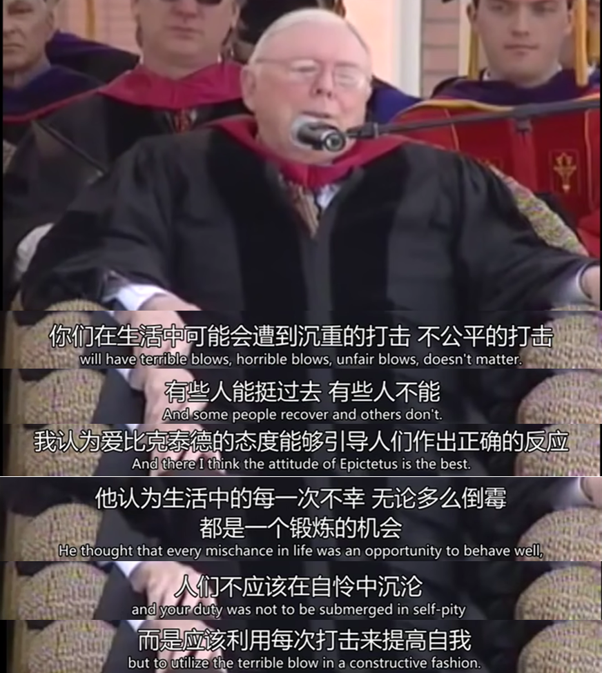 面对这些打击,他引用爱比克泰德的话:「生活中每次不幸都是学习的机会,人们不该在自怜中沉沦,而是应该利用每次打击来提高自我。」