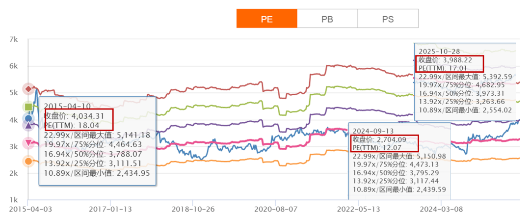 而过去一年的上涨,估值和指数上涨也是同步的。换句话说,这次涨。主要是市场情绪推动。不是企业盈利能力提升。