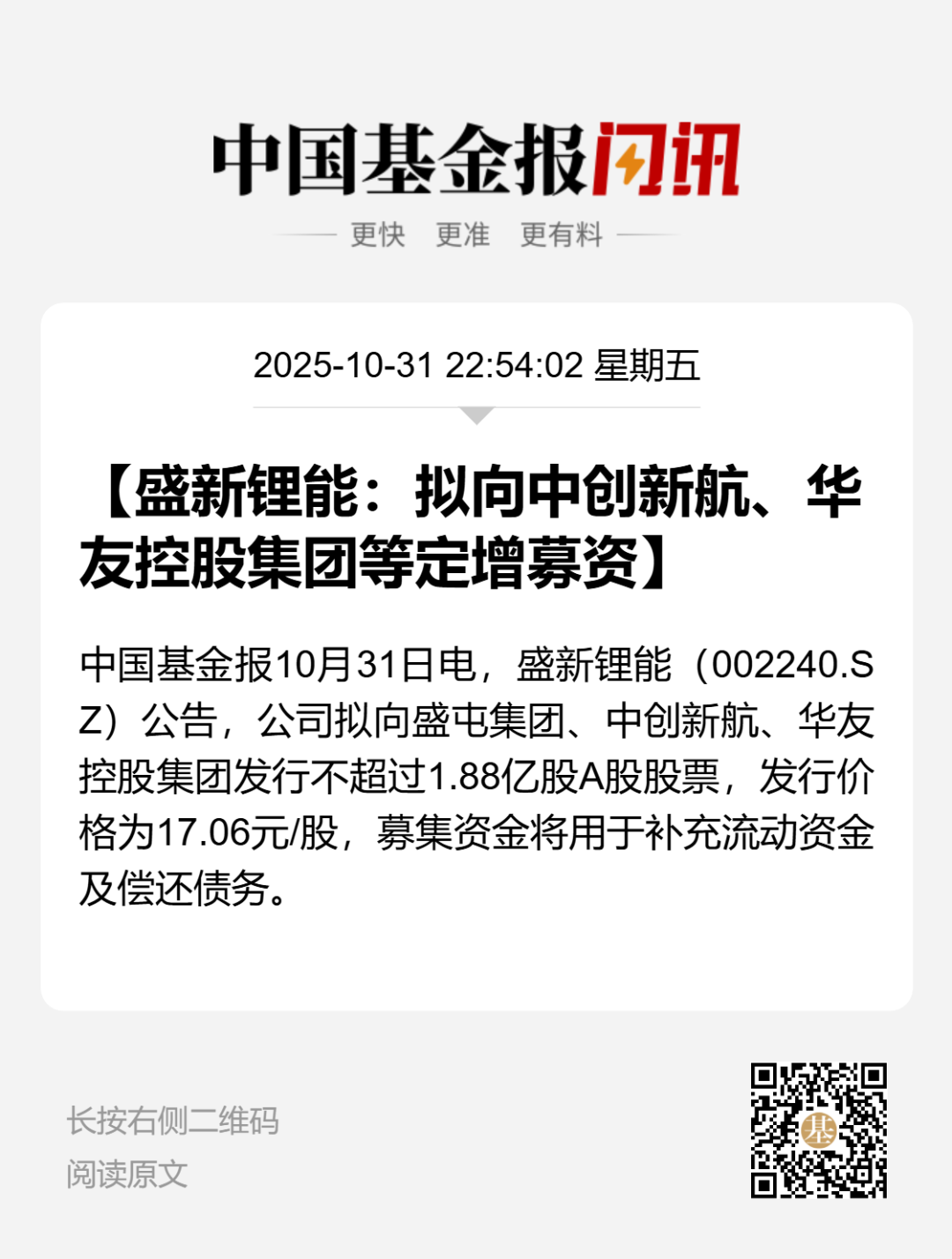 同日晚间,盛新锂能发布公告称,公司终止筹划港股IPO事项,并且拟通过定增方式引入战略投资者,包括中创新航、华友控股集团有限公司(以下简称华友控股集团)。