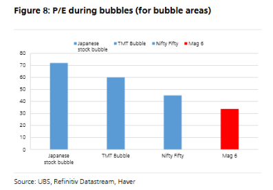 当前Mag 6(剔除特斯拉的科技六巨头)的市盈率仅为35倍,远低于泡沫水平。