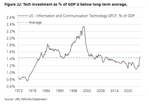 除了估值,引发泡沫破裂的长期结构性因素,如过度投资和过度杠杆,在当前也并不明显。
