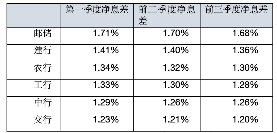 其中,中行净息差企稳趋势明显,前三季度中行净息差为1.26%,与其上半年净息差持平。