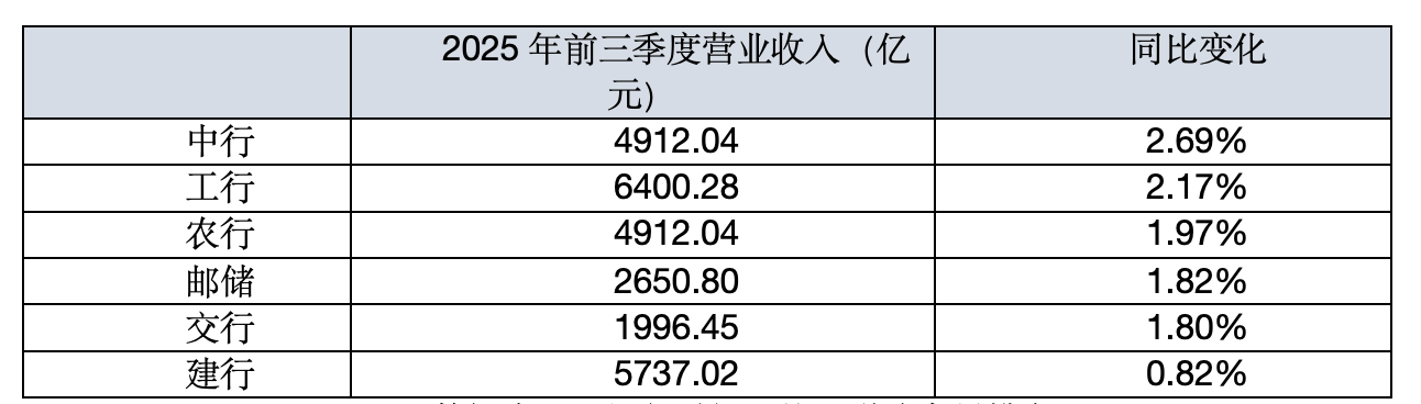 截至10月底,六大行均公布了2025年前三季度业绩,传递出业绩企稳回升的“暖意”。