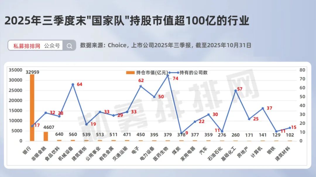 2025年三季度末,“国家队”合计持股市值超10亿元的公司有163家,超100亿元的公司有33家。