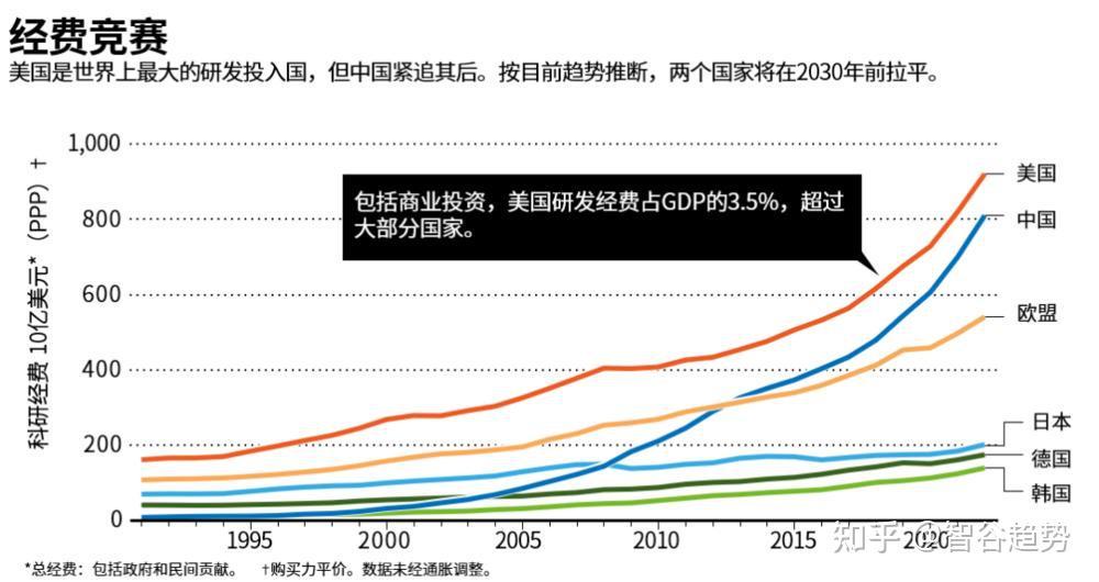 首先,研发投入持续加码。2024年,中国研发经费投入突破3.6万亿元人民币,同比增长8.3%,是2017年的两倍。按此趋势,到2030年,中国研发投入有望与美国持平。