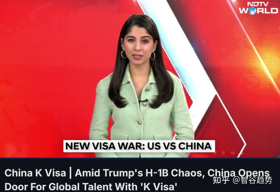 NDTV的电视报道打出大标题:“特朗普H-1B混乱之际,中国以K签证向全球人才敞开大门”。