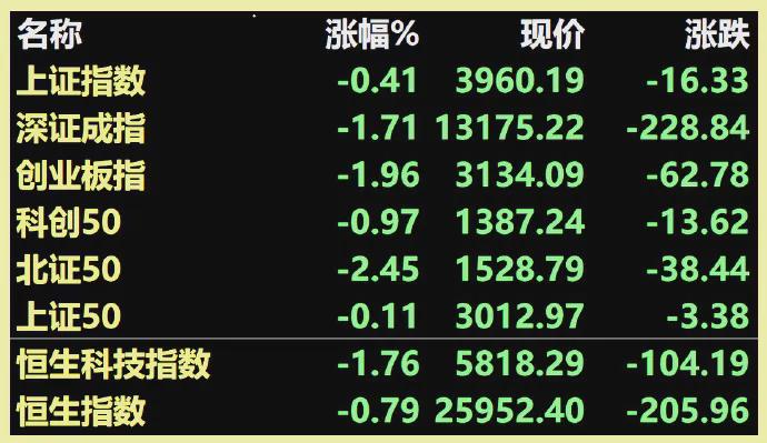 特斯拉收跌5.21%、AMD收跌3.70%、在美台积电收跌3.55%、费城半导体收跌4.01%……大票中仅苹果微涨0.37%。