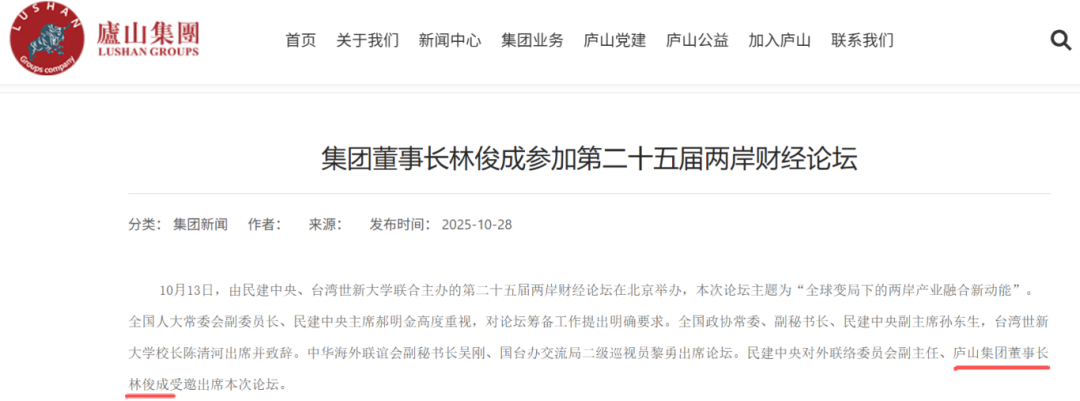 尽管旗下有香港企业,但林俊成近年来多是以庐山集团董事长的身份活跃于公开报道。