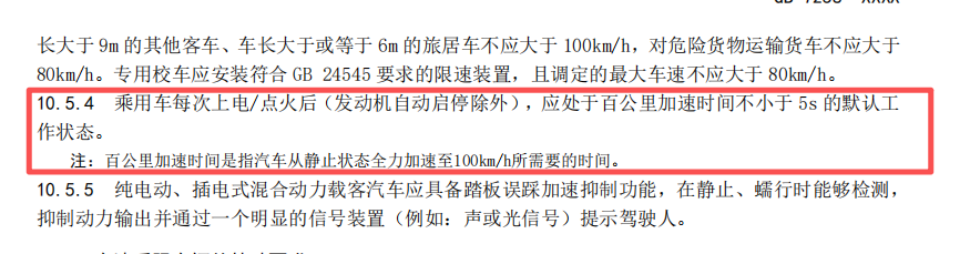 至于零百加速的规定,主要针对的是低速误踩场景,同时也能打击部分厂商对“弹射起步”模式的过度宣传。