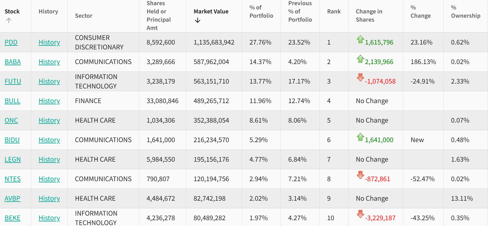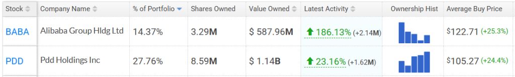 HHLR Advisors持仓中中概股市值占比超过90%,继续作为核心配置,凸显其对中国优质资产的长期看好。