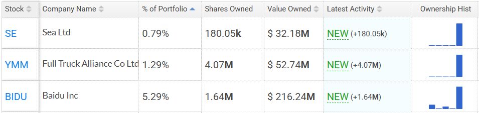 除百度外,该基金还小规模新建仓了数字货运平台满帮集团(YMM)和东南亚数字经济公司冬海集团(SE),显示出其在核心赛道之外的试探性布局。