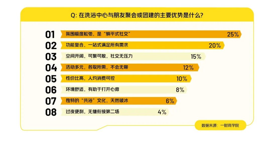 一财商学院调研显示,25%的年轻人选择洗浴中心,是因为“松弛式社交”。