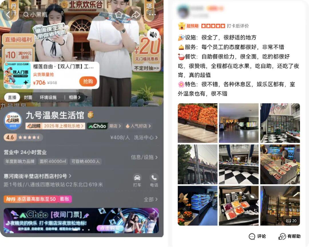 为此,它跳出传统洗浴的竞争维度,基于美团生态资源联动北京欢乐谷进行跨界营销,线上通过直播联动传递“玩乐+洗浴”的一站式体验,线下在乐园内设置推广点位,共同打造都市娱乐目的地品牌形象。