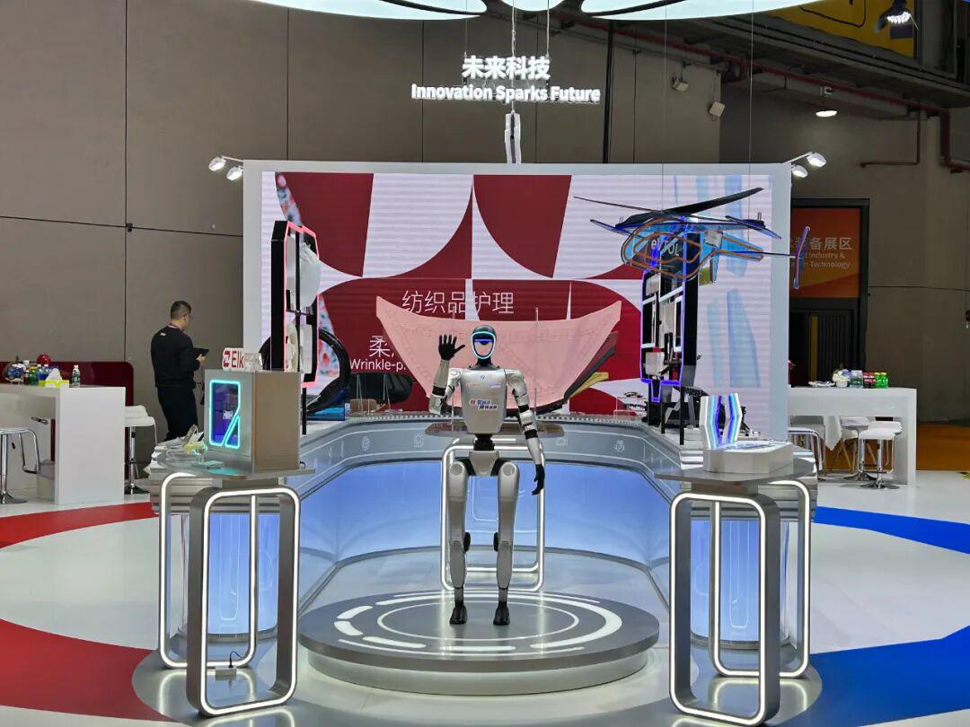 △进博会上,机器人在展位“迎客”。(中国商报记者 马嘉/摄)