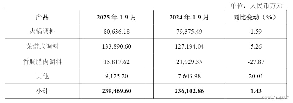 到了2025年,前三季度天味食品实现营业收入24.11亿元,同比增长1.98%;实现归母净利润3.92亿元,同比减少9.3%。