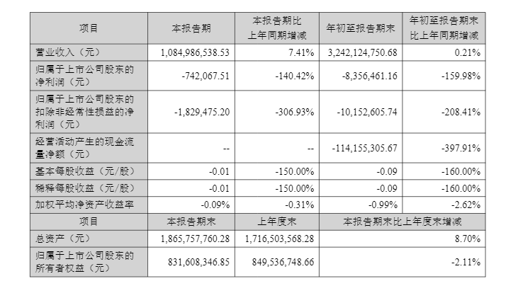 最新财报显示,今年前三季度,药易购营业收入为32.4亿元,同比微增0.21%;净利润由盈转亏,亏损835.65万元,同比下降159.98%;扣非后净利润约为-1015.26万元,同比下降208.41%。