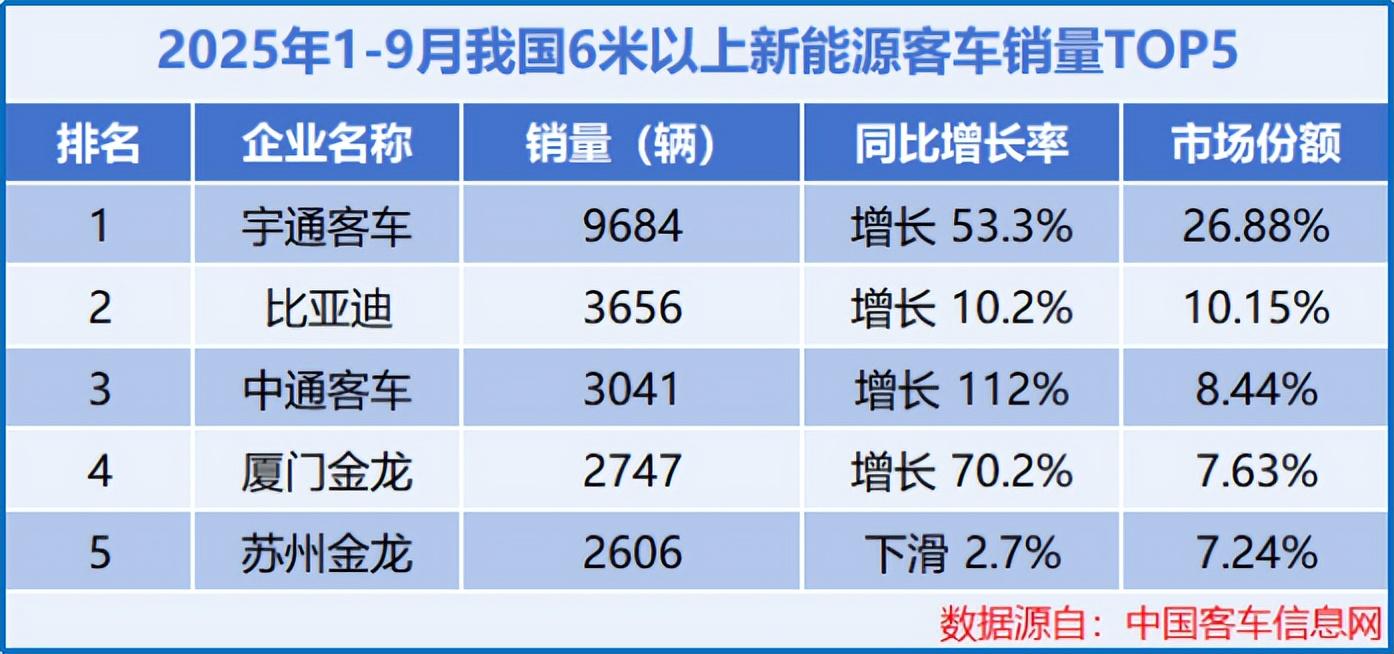 2025年1-9月宇通客车新能源客车销量达9684辆,同比增长53.3%,26.88%的市占率更是领先第二名比亚迪16.73个百分点,为全年业绩冲刺筑牢根基。
