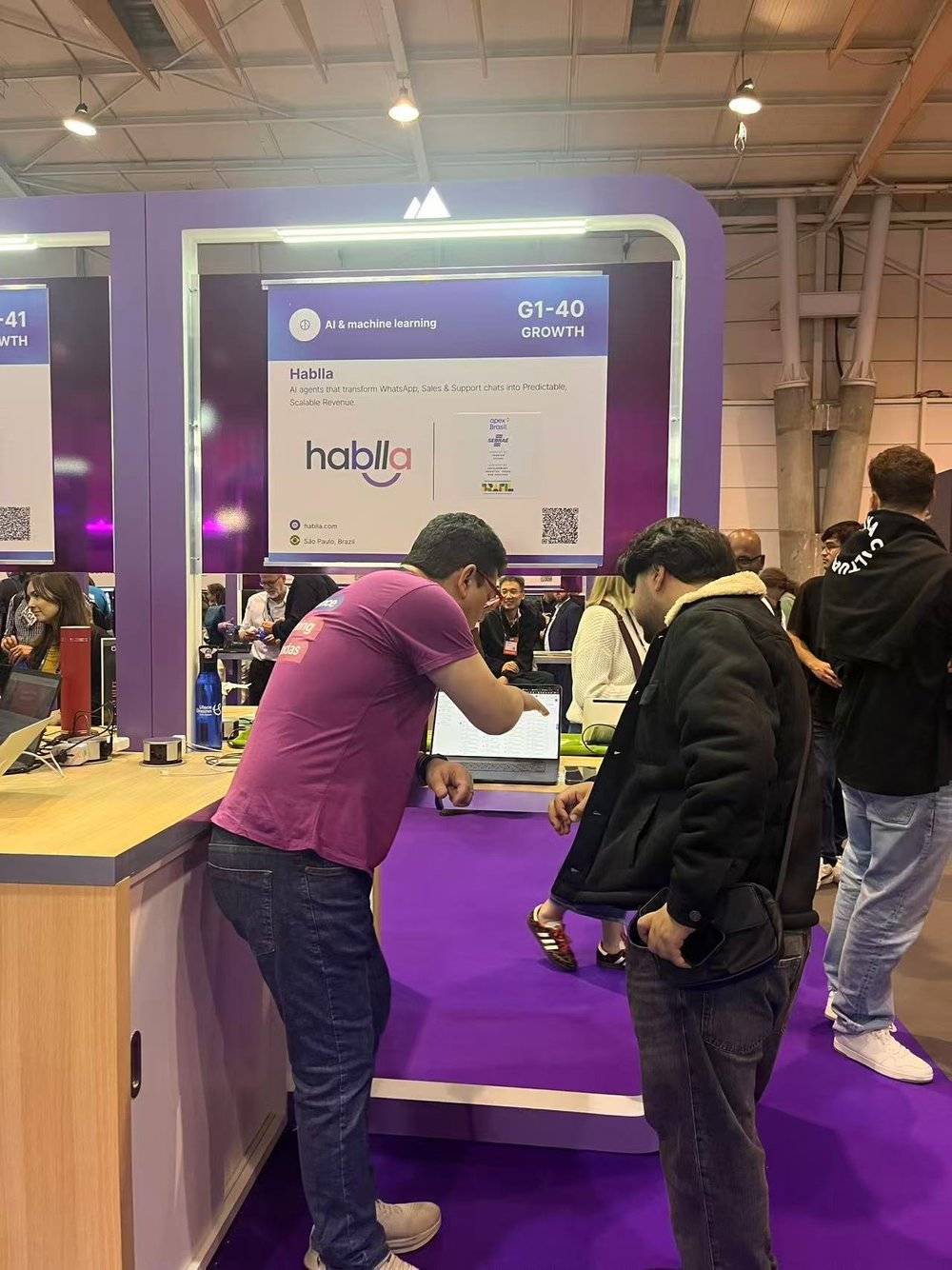 另一个企业来自巴西,这是一家AI销售Agent的公司,这位戴着红色镜框眼镜的创始人热情地介绍自己的项目。