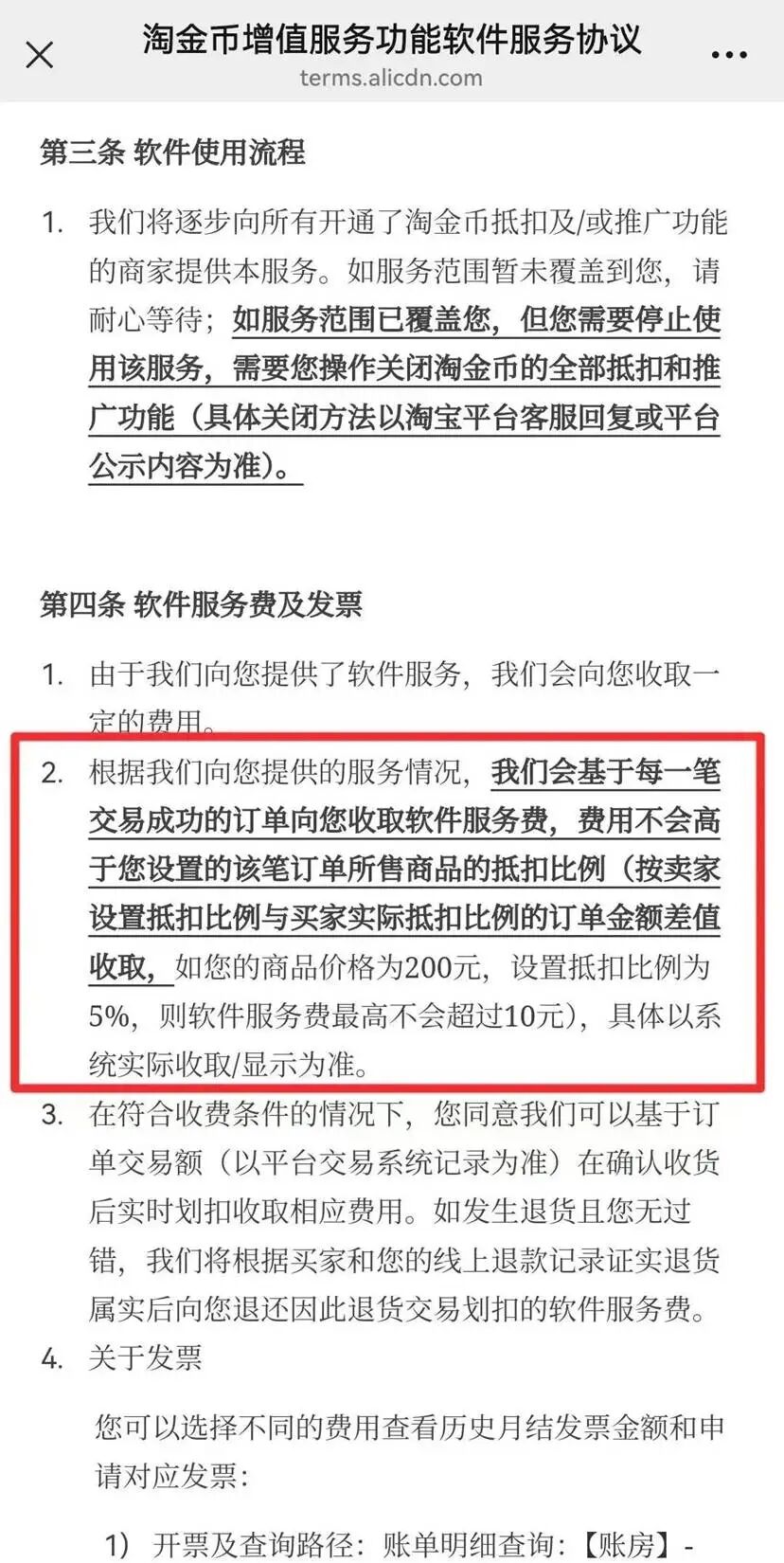 原本商家为用户提供的优惠额度,就这样变成了平台的“软件服务费”。根据这一新规,就算用户完全没有使用淘金币、一分钱没省,这笔服务费商家也要交,10%的金额就全给了平台。