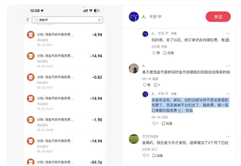 在社交媒体上,很多商家都在反对这种变成站方创收功能的单边规则修改:很多商品利润不多,但扣完淘金币的服务费后,有时候还需要倒贴;