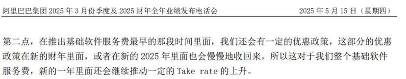 在2025年,3月份电话会上,阿里管理层表示25年一季度客户管理收入同比增长12%,主要由Take rate提升所带动——没有提及GMV增长。