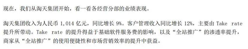 “客户管理收入同比增长10%至人民币892.52亿元(124.59亿美元),主要由take rate提升所驱动-这得益于去年9月新增的基础软件服务费以及全站推广的渗透率提升。”