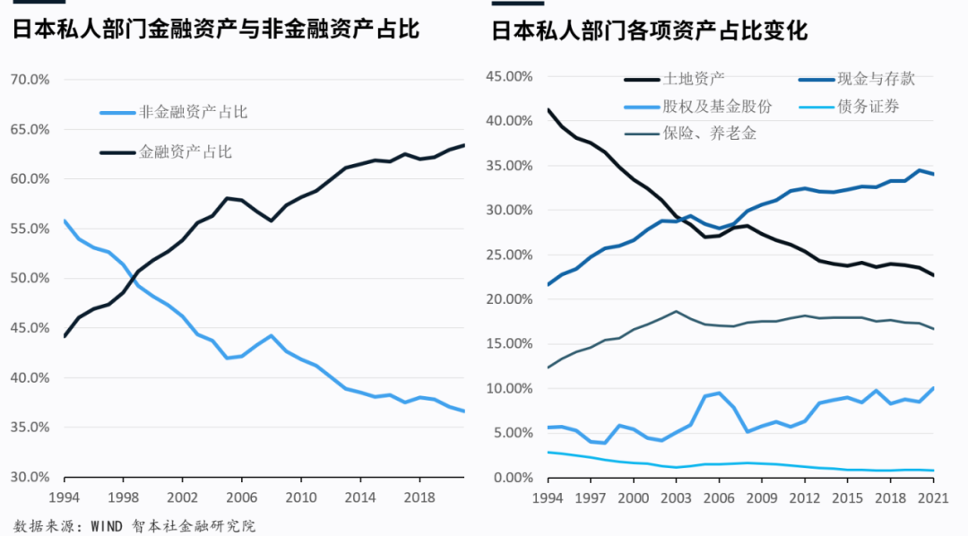 其中,增持最多的、比例最高的金融资产就是现金和存款。为什么?最糟糕的时候,通缩时代,现金为王。如果没那么糟糕,股票行情好一些,那么就存款搬家到股票市场,也不会继续增持房地产。正如,2012年之后,日本股票持续上涨,日经指数翻了六倍,而日本房屋除了东京外,大部分城市维持低迷,价格相当于峰值的一半。