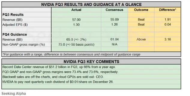数据中心业务是英伟达最核心的营收来源。该季度,其数据中心营收达512亿美元,远超分析师预期的490.9亿美元,同比增长66%。其中,“计算业务”(GPU产品)贡献430亿美元营收;“网络业务”(GPU 协同运作的相关组件)占数据中心营收的82亿美元。其游戏业务营收达43亿美元,同比增长30%。英伟达还将机器人技术列为核心增长领域之一。第三财季,其汽车及机器人业务营收总计5.92亿美元,同比增长 32%。