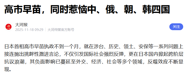 高市早苗仅仅用了10天,就把周边邻居全得罪了一遍,让日本在东北亚成了孤家寡人。