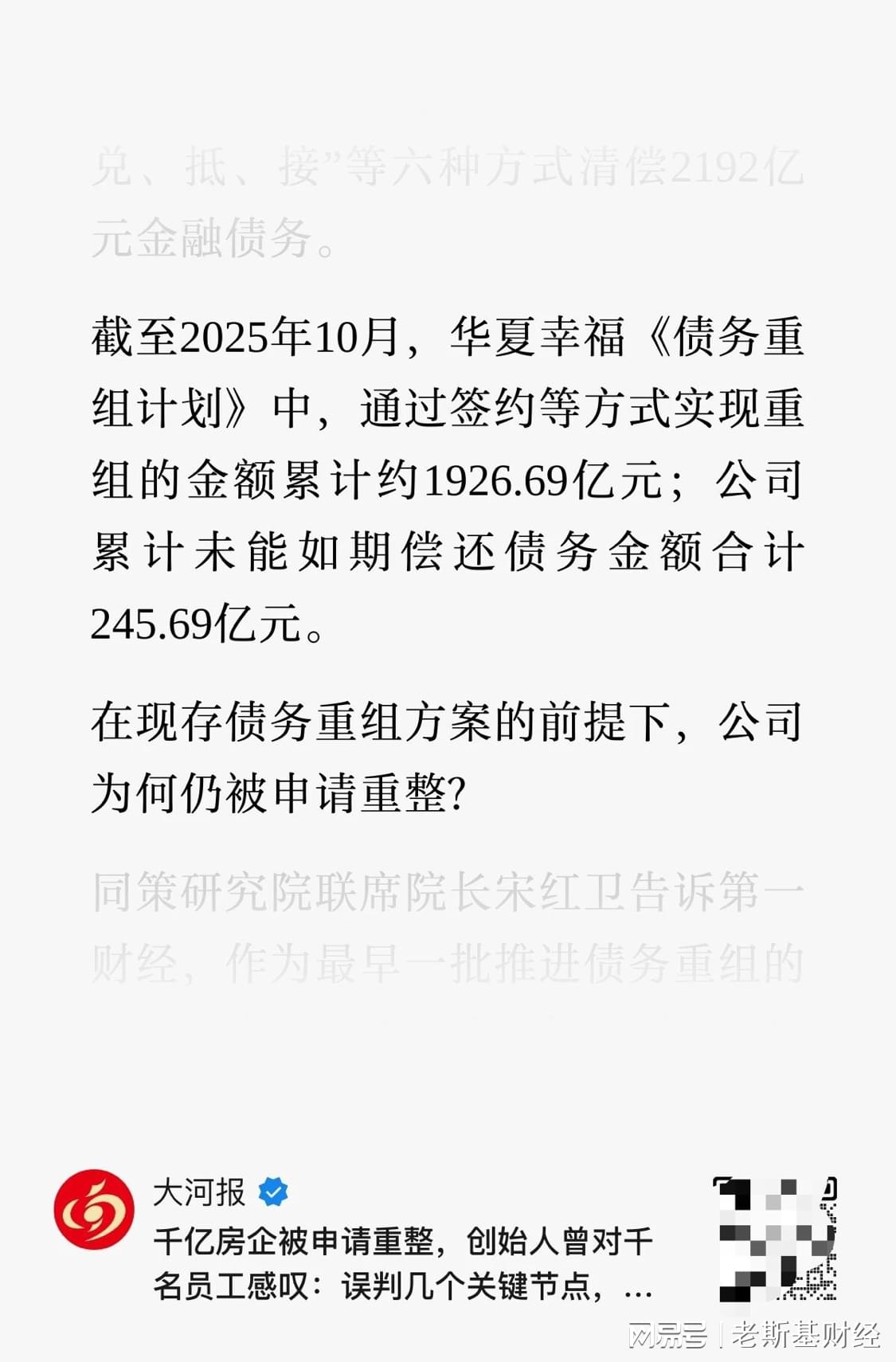 华夏幸福还有超过1600亿的金融债务悬而未决。