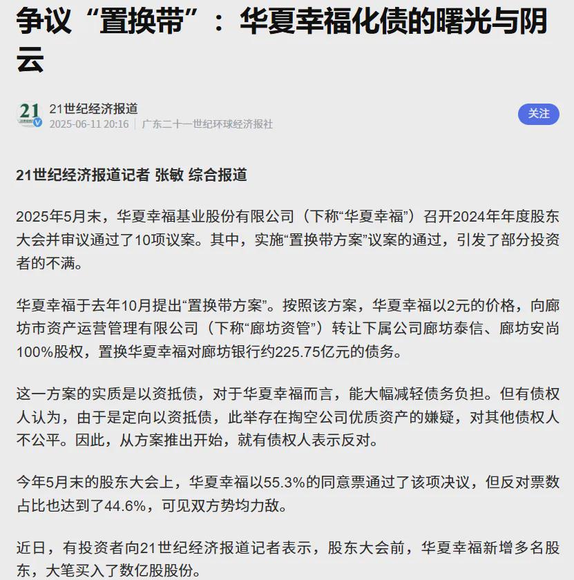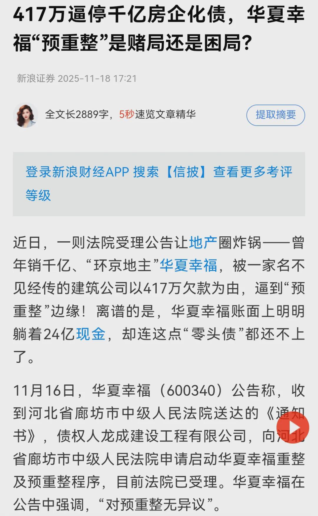 按照《新浪证券》的说法,华夏幸福原来承诺2023年年底向债权人兑付约30%的现金,到目前实际清偿——